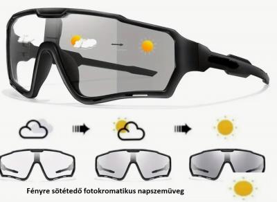 Nagyméretű fotokromatikus - fényre automatikusan sötétedő - lencséjű napszemüveg, amely könnyedén illeszthető be a legtöbb bukósisakba.