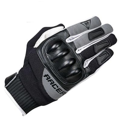 Rövid kialakítású, kényelmes, protektoros textilkesztyű bőr betétekkel.