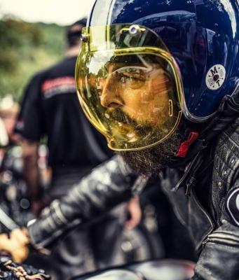 Stílusos kiegészítője a nyitott Cafe Racer , vagy más Vintage irányzatú sisaknak, ez a szürkületi vezetést könnyítő, sárga színű Retro buborék plexi, amely könnyedén felpattintható a legtöbb nyitott sisakra.